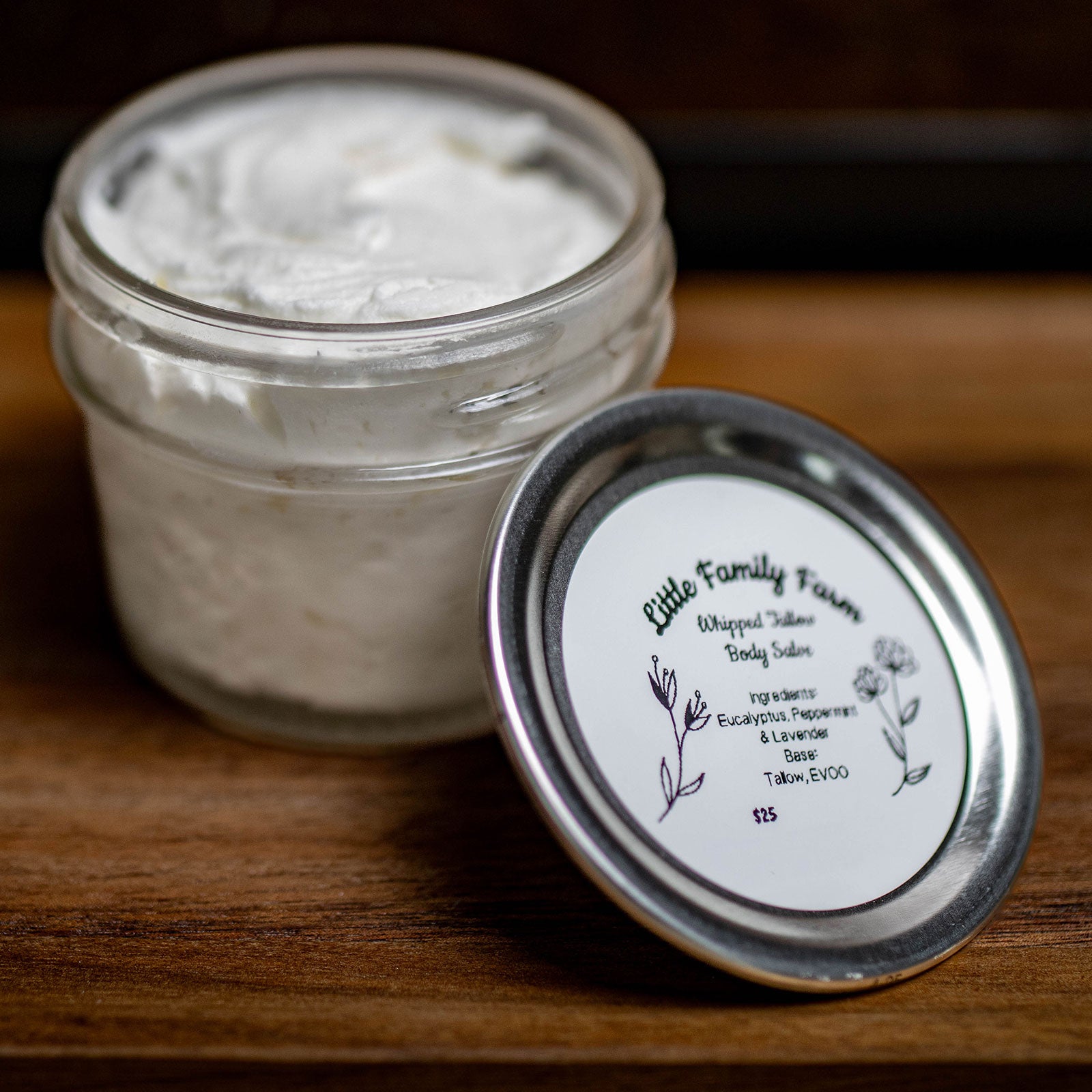 Rehydrate and smooth your skin rapidly with whipped body tallow. The natural repairing ability of beef tallow is remarkable. Your skin will be noticeably smoother after just one application. This tallow is customizable! If there is a scent you prefer I am happy to whip it into the tallow. The whipped texture is extremely soft and applies easily. A little goes a long way with tallow so you won’t need a lot when applying to your skin. To achieve this texture, we do whip in EVOO (extra virgin olive oil) but if you prefer castor oil, I have that available, too.